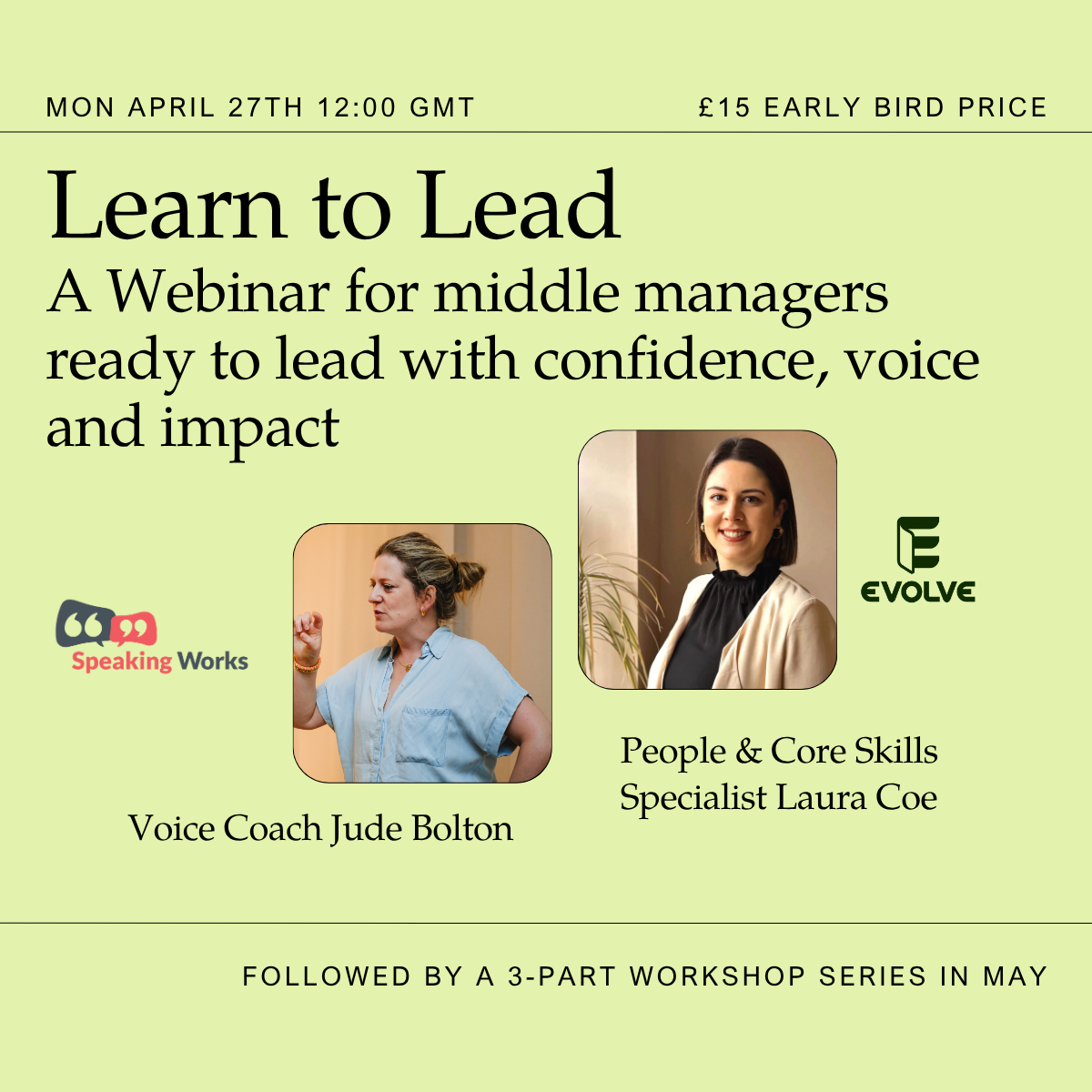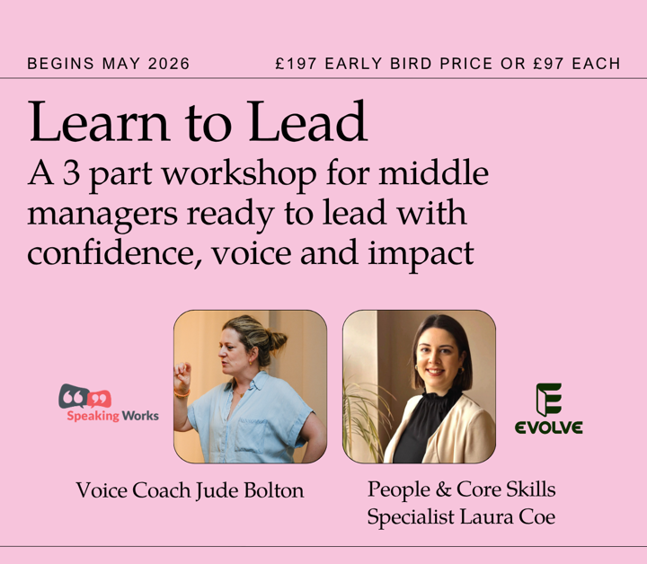 We’re teaming up with Jude Bolton, from Speaking Works. She is a leading Voice and Communication Coach who helps people speak with clarity, confidence, and authority.
